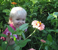 The backyard features a 60' boomerang-shaped color riot of wildflowers backed with slowly emerging hollyhocks; an island of small, medium, and large sunflowers to camouflage the neighbors workshop; Roma and Big Boy tomatoes, green, red, and yellow, serrano and jalapeno peppers, and and a creeping monster pumpkin patch; and a fence corner rose garden surrounded by creeping thyme.